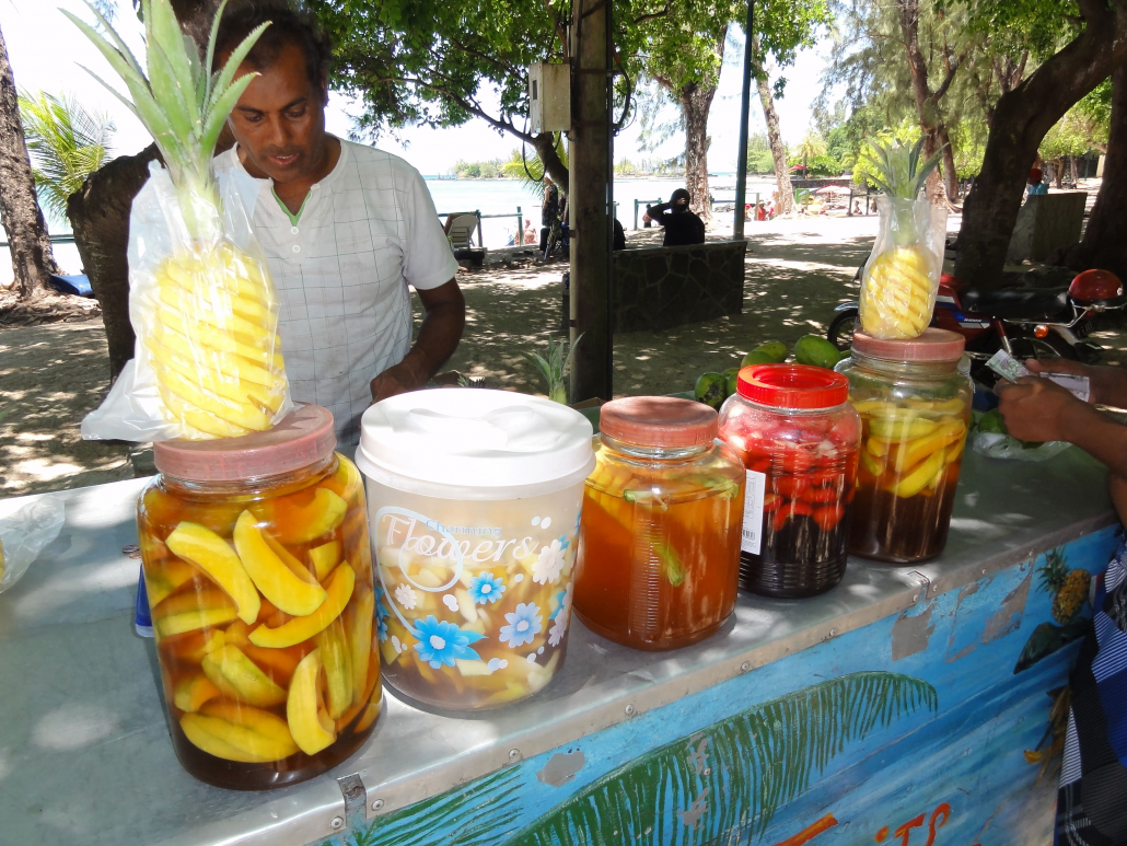 Déjeuner typique mauricien sur la plage accompagné d’un punch.